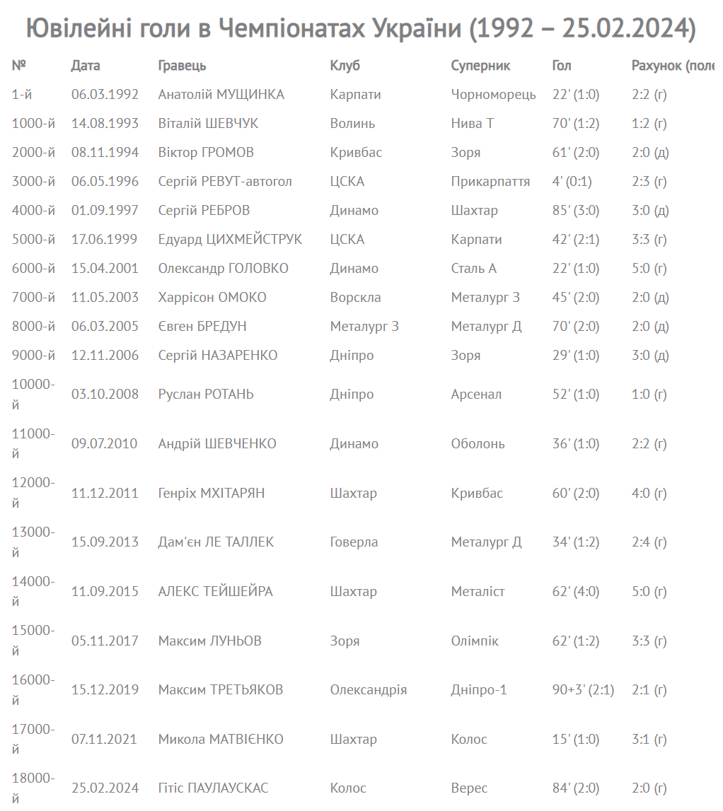 У поєдинку 18 туру УПЛ між Вересом і Колосом було забито 18-тисячний гол у рамках чемпіонатів України, передає офіційний сайт турніру.