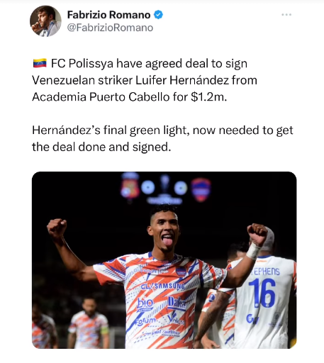 Молодий нападник Луіфер Ернандес, який виступає за Академію Пуерто-Кабельо у вищому дивізіоні Венесуели, близький до переїзду в українську Прем'єр-лігу. Про це повідомляє журналіст Фабріціо Романо у своєму Instagram.
