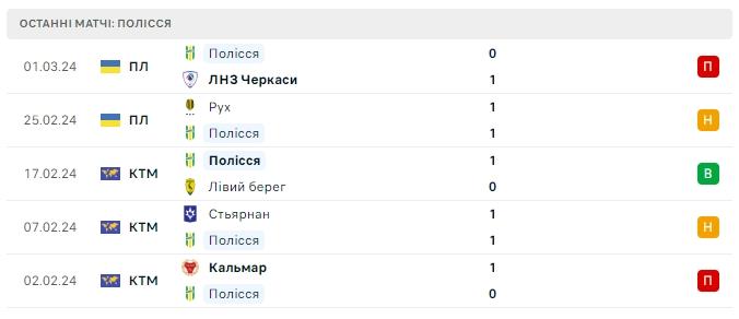 Безвиграшна серія Полісся в Чемпіонаті триває 5 ігор: 4 нічиї та поразка.