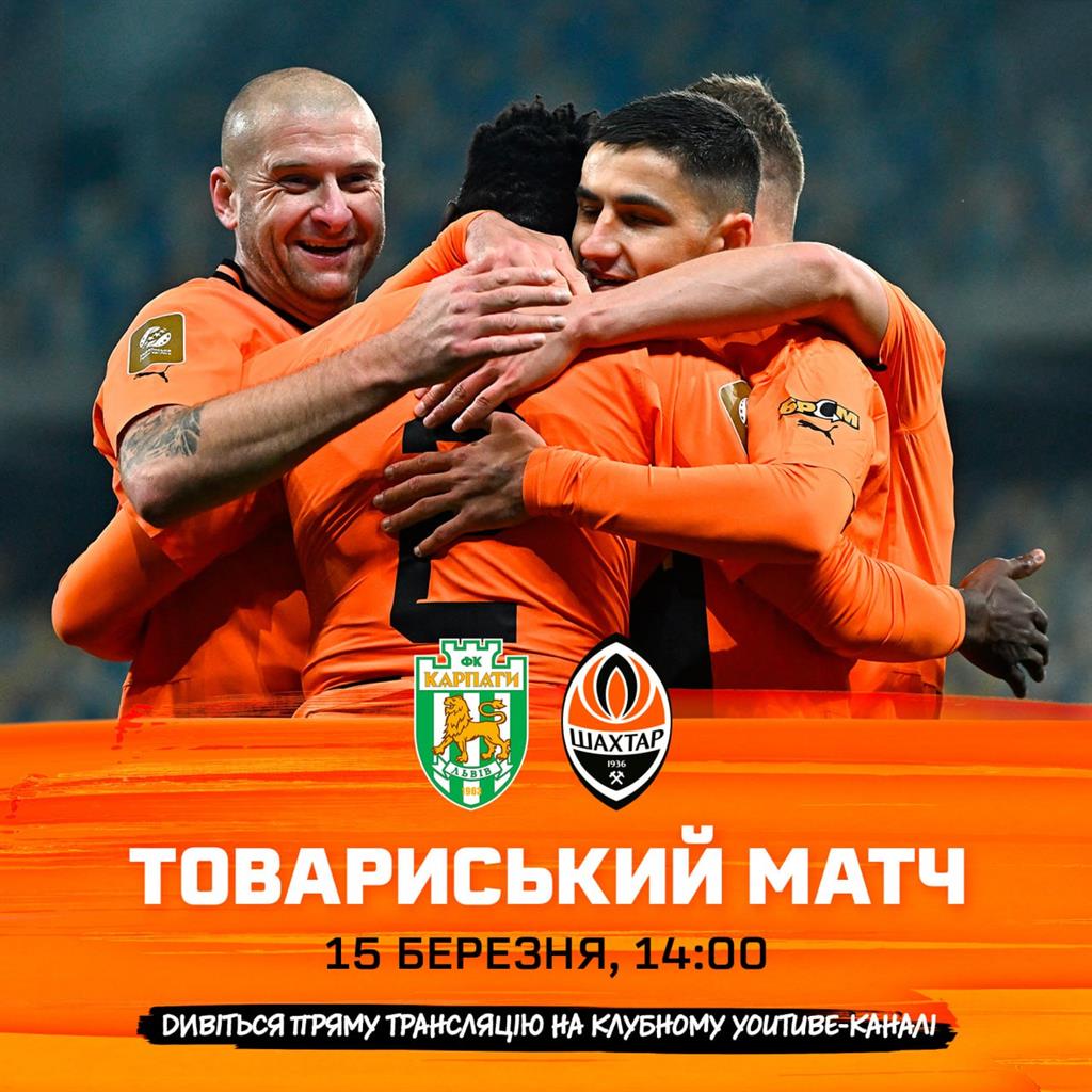 Шахтар зробив анонс товариського поєдинку з Карпатами, який відбудеться у Львові без вболівальників на трибунах.