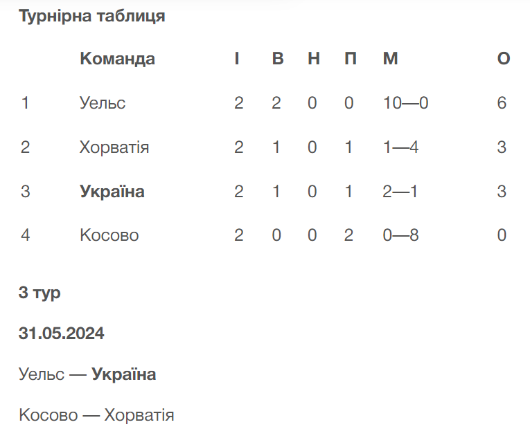 Наступний свій матч у відборі на чемпіонат Європи жіноча українська збірна зіграє 31 травня на виїзді проти Вельсу, який є лідером турнірної таблиці з двома перемогами у перших двох турах та різницею забитих та пропущених 10-0.