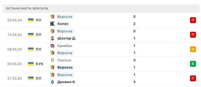Безвиграшна серія Ворскли в УПЛ триває 5 ігор: нічия та 4 поразки.
