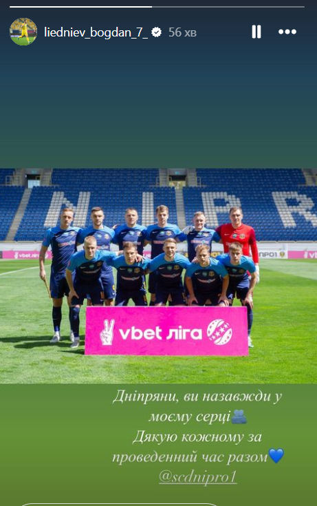 "Дніпряни, ви назавжди у моєму серці. Дякую кожному за проведений час разом", — написав Богдан Лєднєв у своєму Instagram.