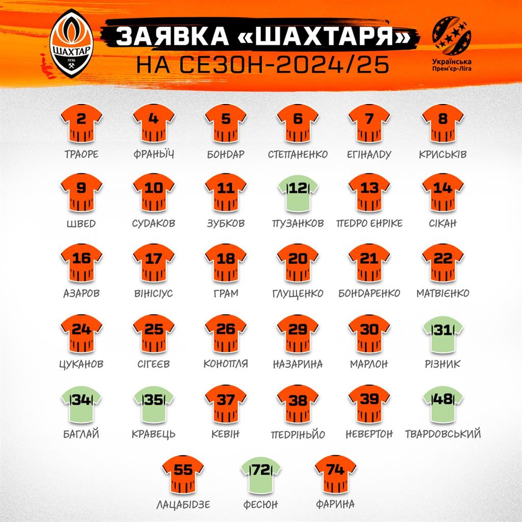 Шахтар подав офіційний заявковий лист для участі в матчах внутрішніх змагань сезону-2024/25, передає офіційний сайт клубу УПЛ.