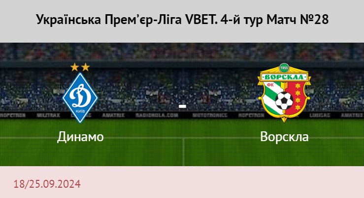 У рамках четвертого туру української Прем'єр-ліги київське Динамо 24 серпня мало зустрітися з полтавською Ворсклою, проте цей матч було офіційно перенесено через виступи "біло-синіх" в кваліфікації до Ліги чемпіонів.