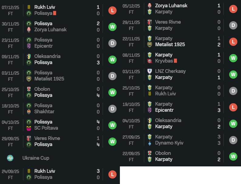 Проте Карпати не можуть виграти вже три матчі поспіль, два з яких узагалі програли потенційним конкурентам у особі Металіста 1925 (1:2) та Зорі (0:1). "Зелено-білих" нещадно критикують, і правильно роблять насправді, бо рівень можливостей та амбіцій клубу наразі взагалі не відповідає тому, що ми бачимо на футбольному полі. До Полісся теж у фанатів уже назбиралось чимало питань, але команда Ротаня хоча б якісь більш-менш позитивні емоції стабільно приносить своїм фанатам.