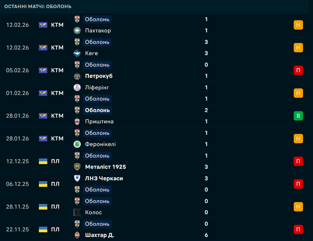 У "пивоварів" тим часом також тривав адаптаційний період на чолі з Олександром Антоненком, проте видався він усе ж таки більш успішним. Хоча й завершення календарного 2025 року Оболонь також зіпсувала, і в підсумку спостерігатимемо за грою команд, які виграли лише одну гру на двох за останніх десять зустрічей. А ще критично мало забивали обидві — найнижчі показники серед усіх команд, у столичного колективу ще й менше голів на рахунку (усього 12).