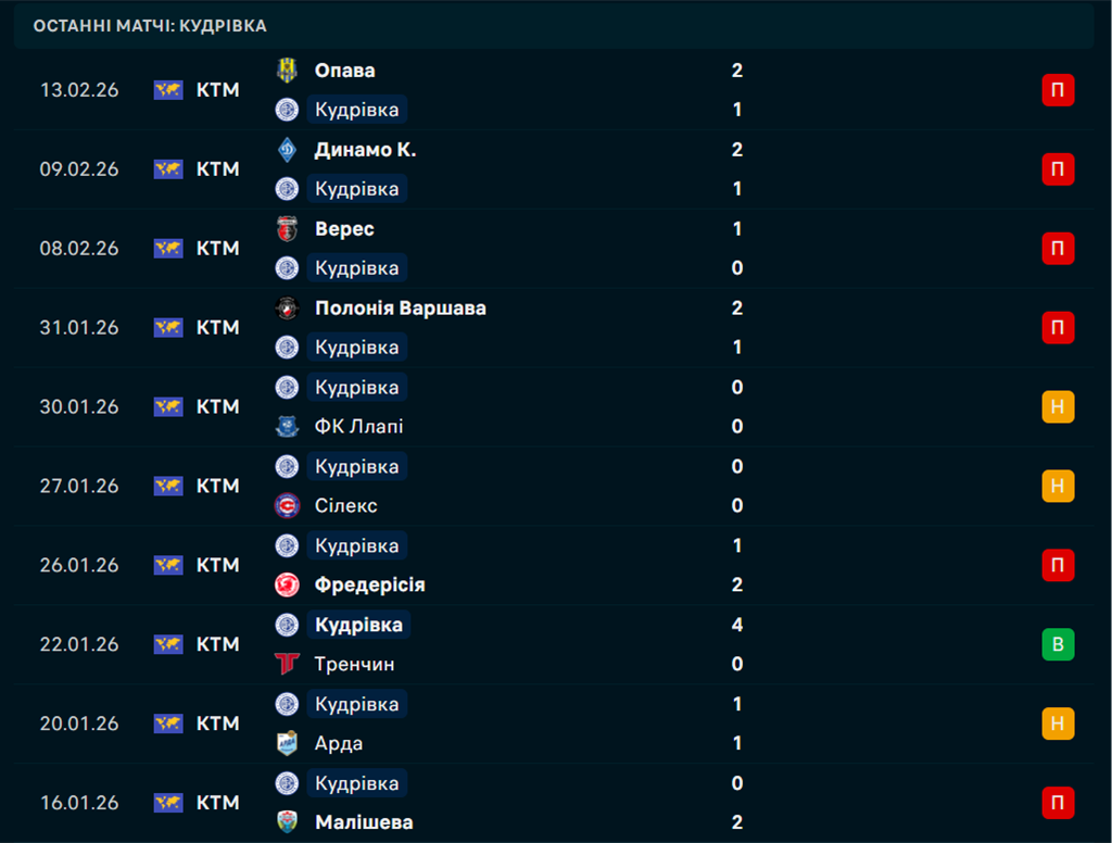 - Кудрівка програла останніх два матчі на власному полі;