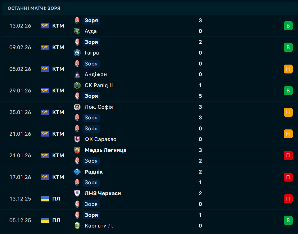 - Зоря програла останніх два матчі на полі суперників;