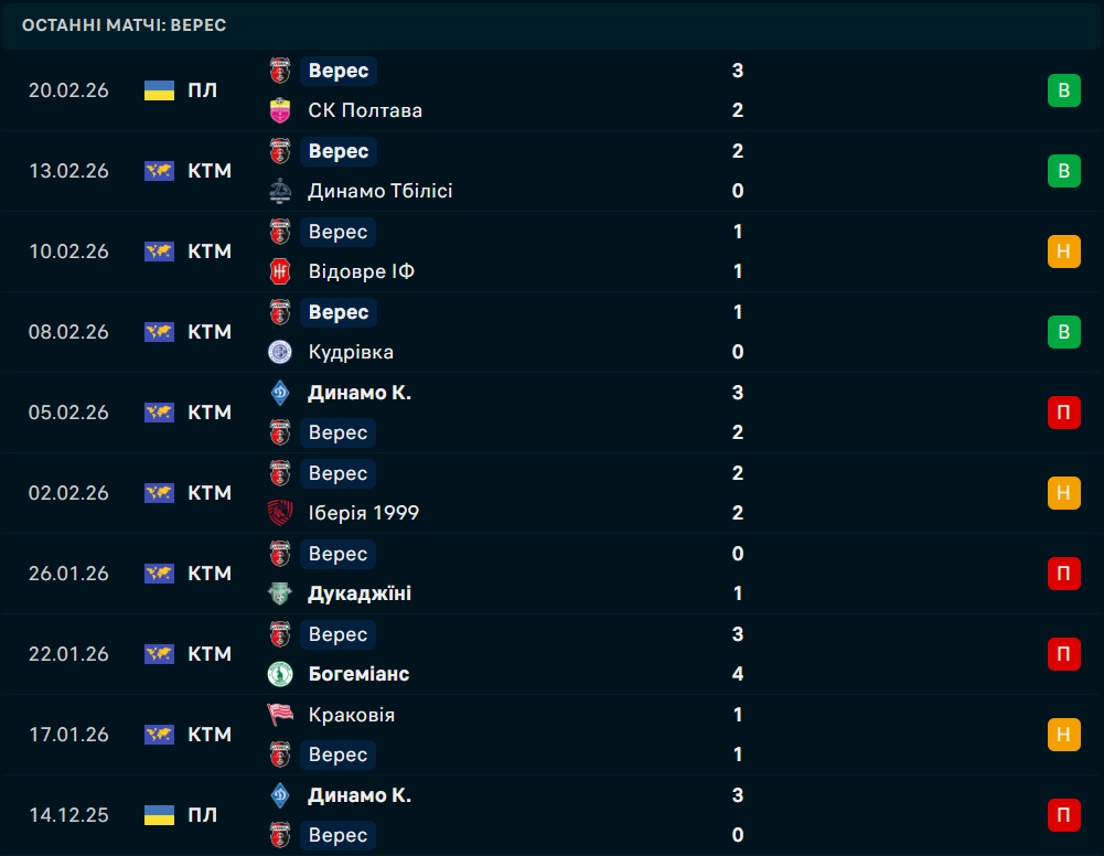 - Верес може провести 90 безгольовий матч, із яких 20 "сухих" буде в гостях;