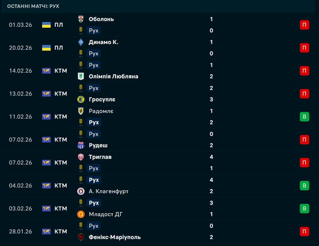 - Рух за Івана Федика може зазнати 10 домашньої поразки в чемпіонаті.