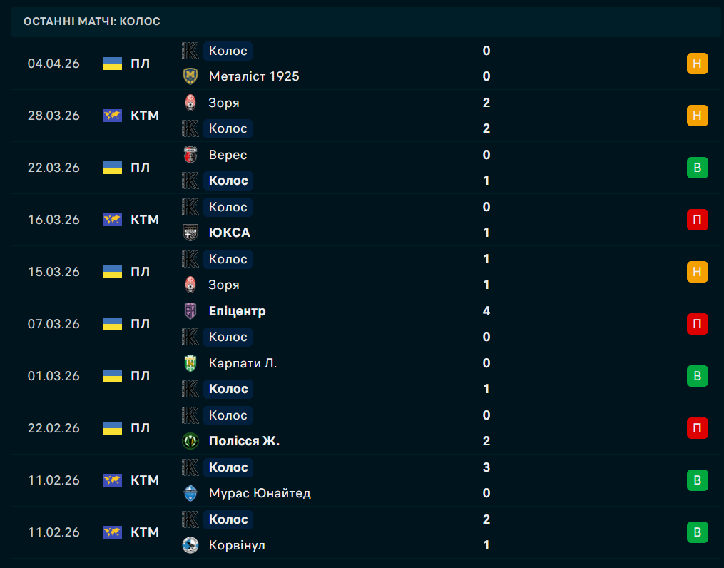 - Колос не грав унічию в останніх трьох зустрічах: дві перемоги та поразка;