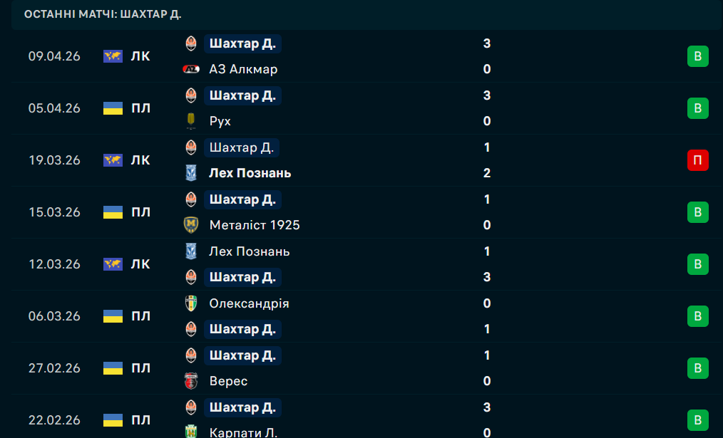 - Шахтар не програє в чемпіонаті 13 матчів поспіль: 10 перемог, три нічиїх;