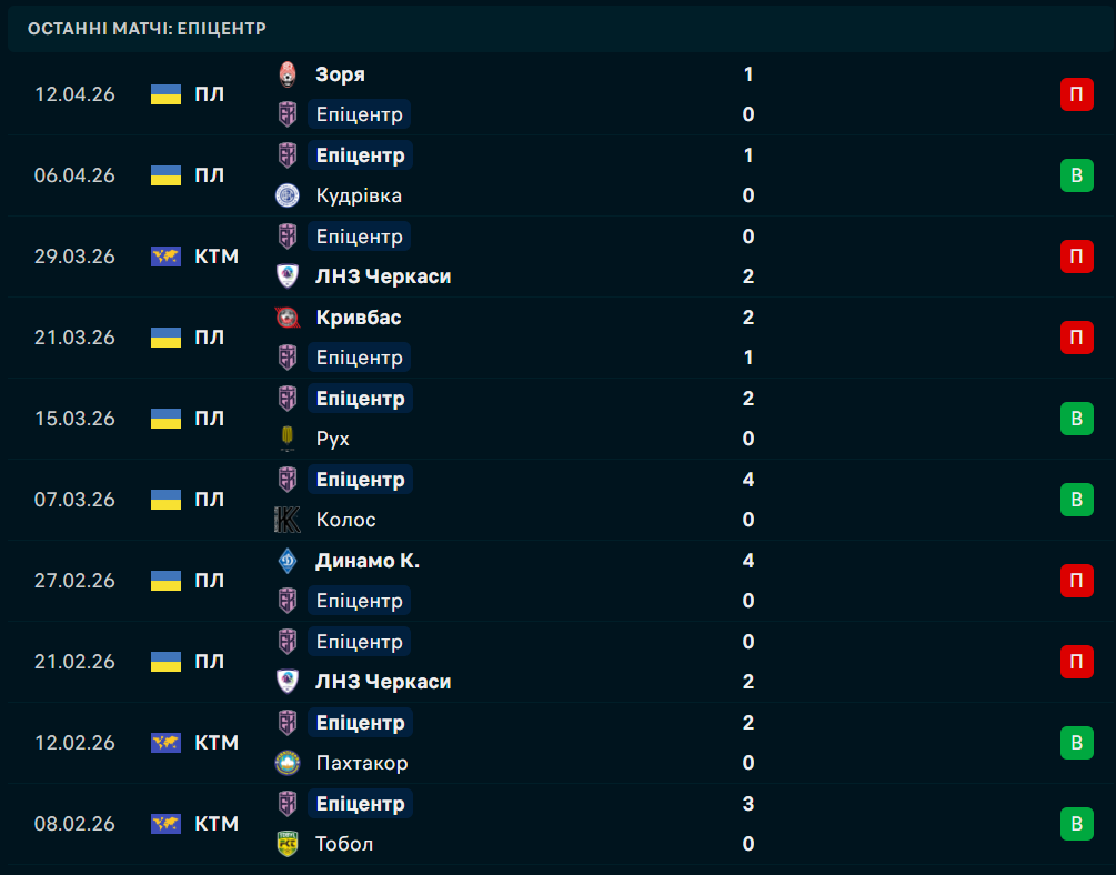 - Епіцентр не грає внічию вже дев’ять матчів поспіль у чемпіонаті: чотири перемоги, п’ять поразок;
