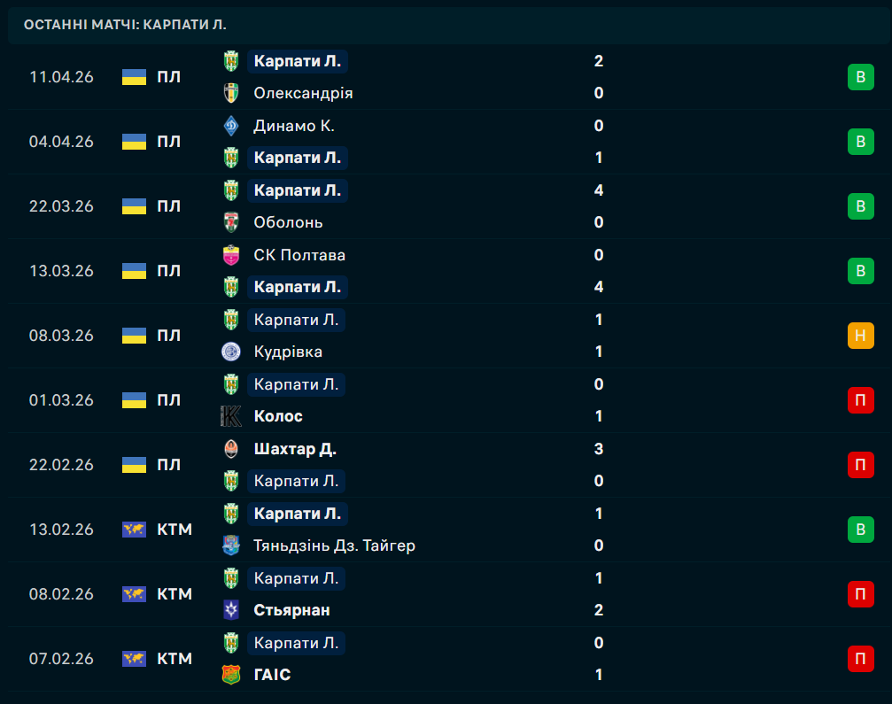- Карпати перебувають у клубній рекордній переможній серії з чотирьох матчів в УПЛ;