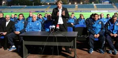 Теперь хочу сказать вам, что наша сегодняшняя встреча будет проходить в неформальной форме и нести характер дружеского диалога. Поэтому задавайте свои вопросы, все игроки, а также я и тренерский штаб готовы на них ответить.