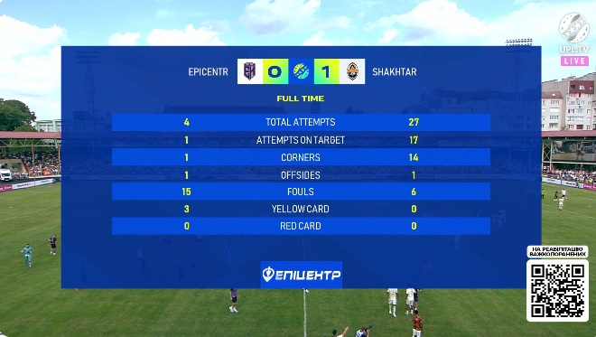 Пролунав фінальний свисток! Матч завершено! 0:1! Епіцентр уперся.