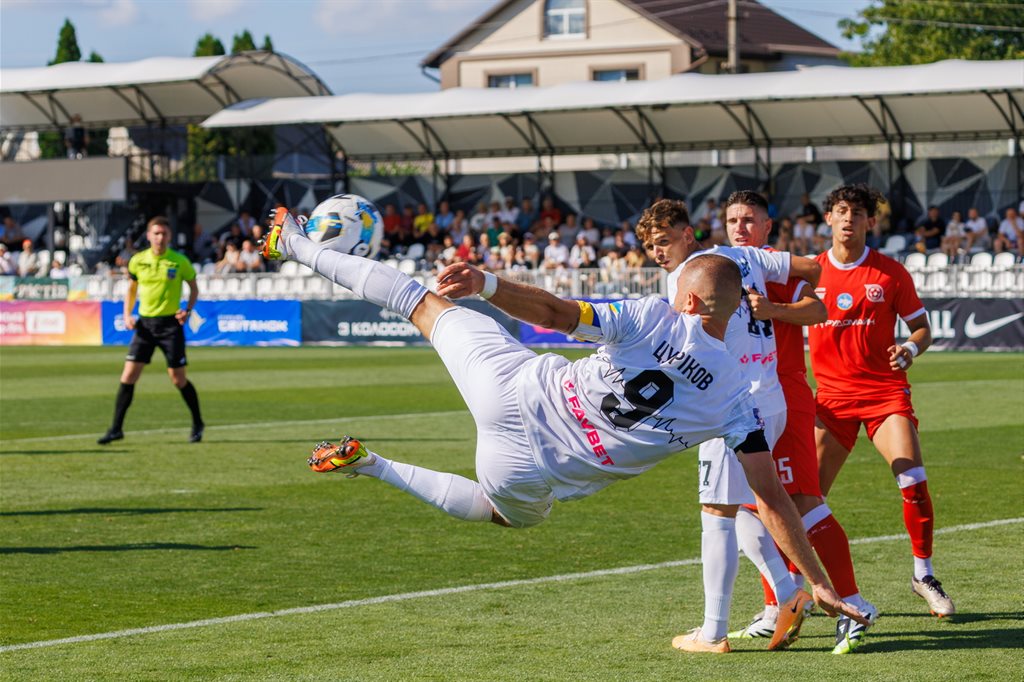 Дальній удар Мельниченка з правого флангу покотився повз ліву стійку.