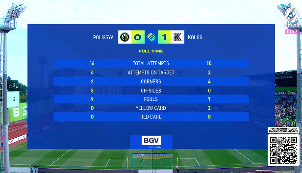 Пролунав фінальний свисток! Матч завершено! 0:1! Колос набирає оберти.