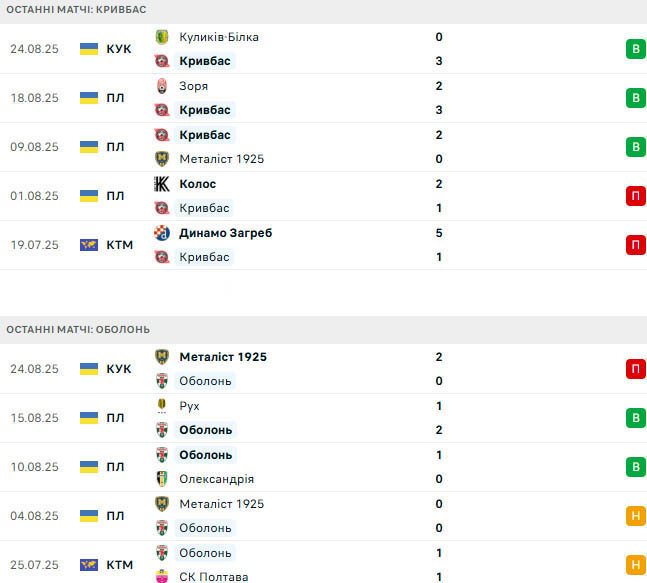 У рамках четвертого туру української Прем'єр-ліги-2025/26 криворізький Кривбас на своєму полі прийме столичну Оболонь.