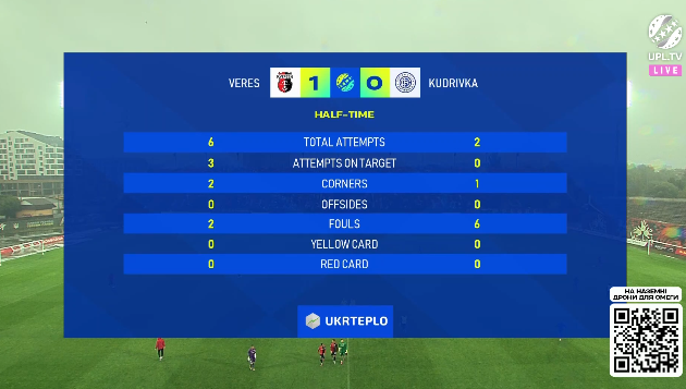 Команди пішли на перерву. 1:0 у нашому матчі після завершення першої половини.