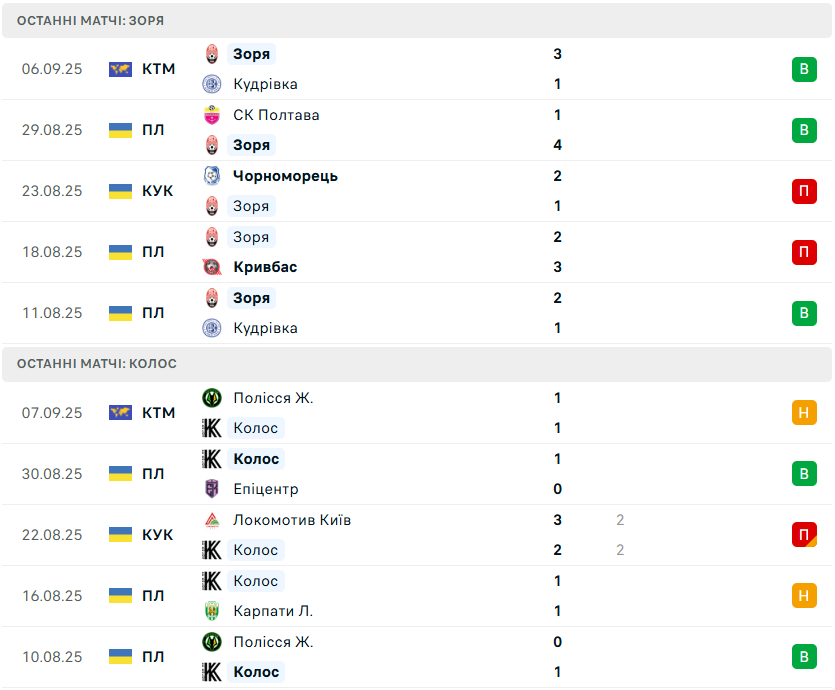 У рамках п'ятого туру української Прем'єр-ліги-2025/26 у Києві луганська Зоря прийматиме ковалівський Колос.