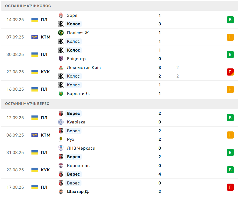 останні матчі