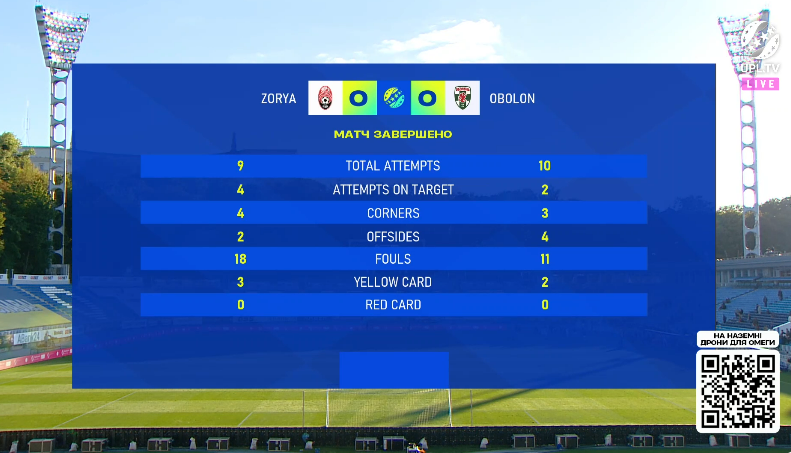 18:00 Зоря 2:2 Олександрія