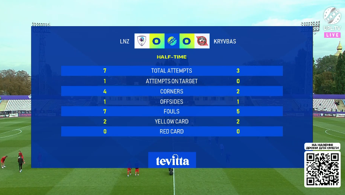 А от ЛНЗ у серії позиційних атак посеред першого тайму навіть сподобався. Було помітно, що Проспер починає випалювати власний правий фланг атаки, і через нього в підсумку й прийшла вся небезпека для воріт Кемкіна. Але й тут гравці господарів стикнулись із поганою влучністю. Момент Дідика з ударом головою з метру від воріт повз вільний дальній кут на завершення подачі з правого флангу взагалі був кричущим, але, як і багато чого в цій першій половині, залишився без фінальної крапки. Ну й чотири жовті на дві команди — боротьба.