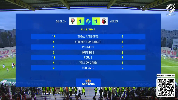 Ось і все! Матч завершено! 1:1! Могли настріляти й більше.