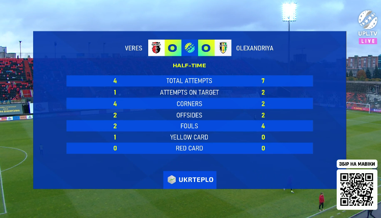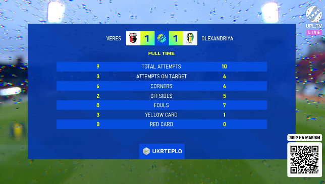 Ось і все! Матч завершено! 1:1! Олександрія таки влучила по воротах у цій грі.