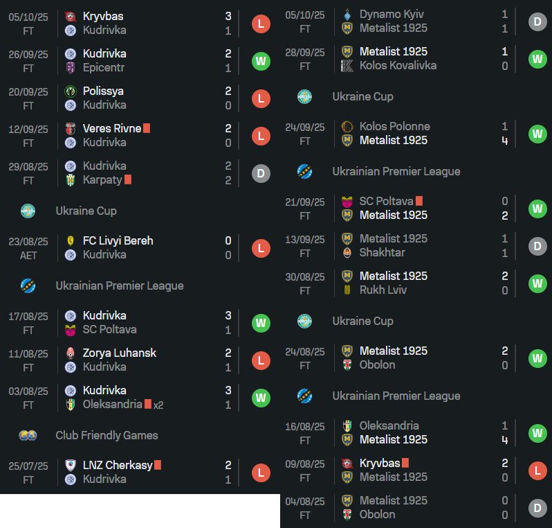 У рамках дев'ятого туру української Прем'єр-ліги-2025/26 у Києві Кудрівка зіграє домашній матч проти харківського Металіста 1925.