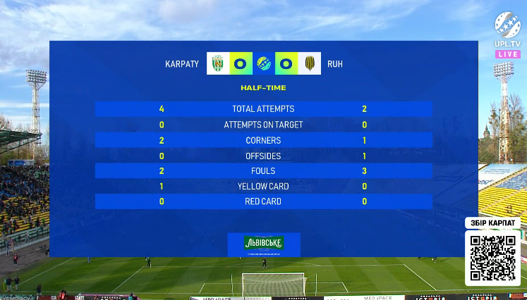 І хоча історія цього протистояння в УПЛ є наразі не надто розгалуженою, але настільки обережного футболу від команд ми все ж таки не очікували. У першій половині гри приблизно пів години ігрового часу ані одним, ані іншим не вдавалось доводити м’яч до штрафних майданчиків, тож ми більше слухали співи торсиди Карпат на трибунах, аніж захоплювались подіями на полі.