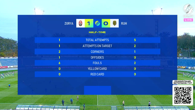 Нехай і не надто сповненим гольових моментів, але вельми цікавим у підсумку виявився перший тайм цього протистояння. Бо банально в ньому було майже все, що в принципі можливо було очікувати від цієї гри. Момент Руха, змарнований зусиллями Фаала на ближній під час прострілу Руніча з правого флангу, відкривав перелік гольових нагод, після чого Зоря трохи занервувала й Джордан за мить ледь не привіз гол у власні ворота невдалими вибиванням м’яча з меж штрафного, влучивши в Притулу.