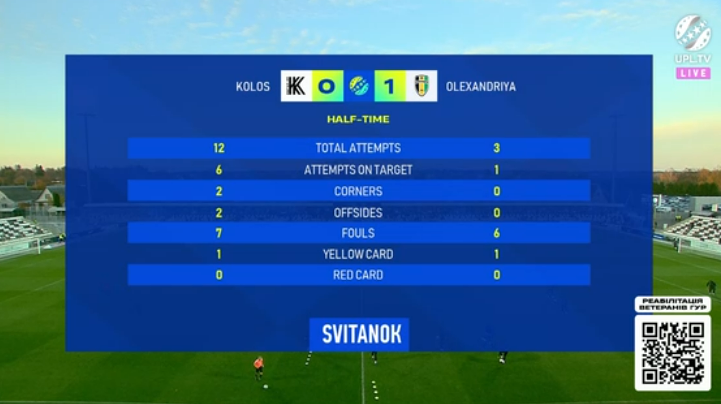 Команда Руслана Костишина спробувала забезпечити нам активний старт протистояння, проте виключно продовжувала збирати погану статистику реалізації власних гольових моментів. Олександрія була затиснута у власному штрафному тривалий час, але дивом обходилась без пропущених голів. Аж раптом, на 31 хвилині гості швидко перейшли з оборони до атаки зусиллями Кампуша на правому фланзі, звідки той зіграв у центр на Булецу, а той перевів далі до штрафного на Цару, який фірмовим ударом під праву стійку відкрив рахунок у грі.