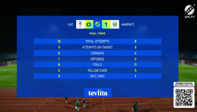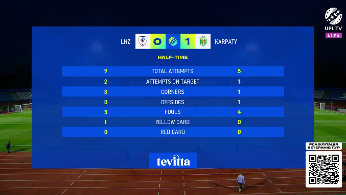 Цей матч у підсумку постраждав від серії повітряних тривог, які доволі підступно зупиняли перебіг подій саме в ключові моменти. От, наприклад, ЛНЗ починає гру з атак на чужі ворота, домінує на м’ячі, створює гольові моменти, знову має проблеми з їхньою реалізацією, Яшарі не переграє Домчака з дальньої відстані, Проспер — не влучає в площину на завершення прострілу з лівого флангу. А потім Карпати забивають фактично з нічого.