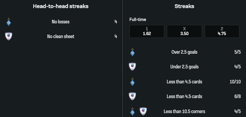 Динамо помітно більше тримає м'яч на старті, але просування обмежене.