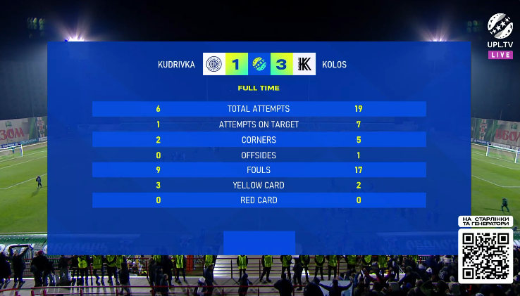 Ось і все! Матч завершено! 1:3! Колос почав реалізовувати.