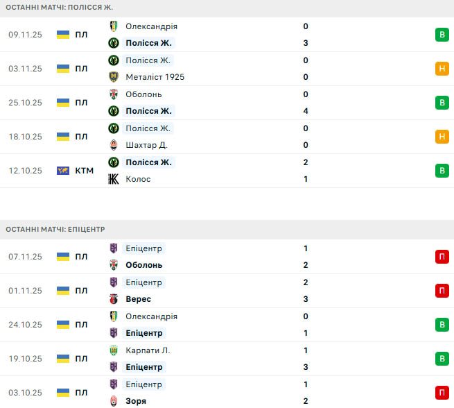 У рамках 13 туру української Прем’єр-ліги у Житомирі Полісся прийматиме Епіцентр.
