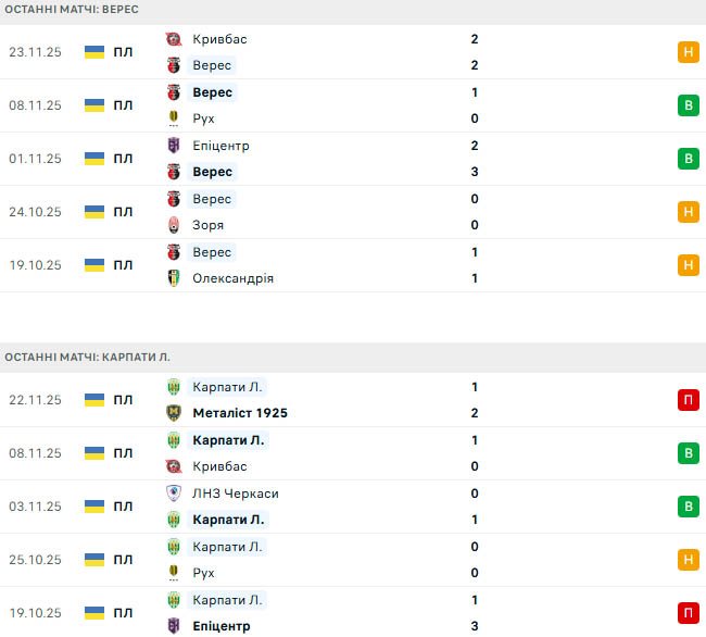 - безпрограшна серія Вереса в чемпіонаті триває шість ігор: дві перемоги та чотири нічиї;