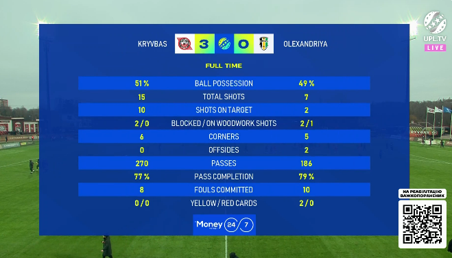Тренерський штаб Олександрії кинув до бою свого головного джокера, Хуссейна Туаті, і той знайшов гольовий момент для себе та створив ще один для Сергія Булеци вже під завісу гри, от тільки тоді рахунок був уже 3:0 на користь Кривбасу. Переможця в цій парі заздалегідь визначився удар невгамовного Микитишина з лівого флангу штрафного під дальню стійку на 66 хвилині, після передачі Араухо з лівого флангу контратаки. І вже потім Маханьков забезпечив собі матч без пропущених голів сейвами під час вищезгаданих моментів у штрафному від суперників.