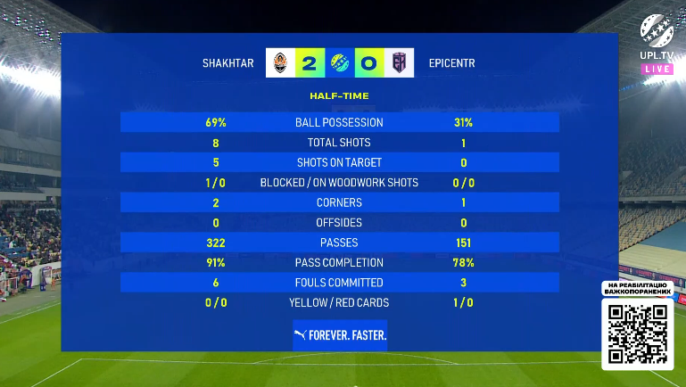 Утім, це знову була гра від оборони від гостей, і можна навіть сказати, що до певної міри "автобус", у салон якого Шахтар потрапив через бокові двері вже на восьмій хвилині гри, коли перегляд відмашки Сіфуентеса в боротьбі на лівому фланзі власного штрафного проти Вінісіуса завершився призначенням пенальті у ворота Білика фактично на рівному місці. Педріньйо да Сілва ударом у правий нижній кут покарання спокійно реалізував, після чого всі заготування Епіцентру на гру можна було викидати в смітник.