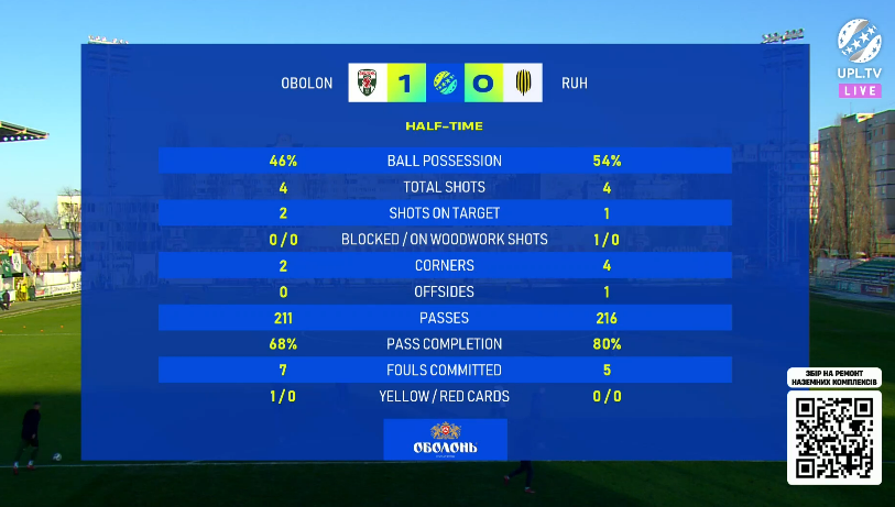 Football.ua запрошує Вас на текстову онлайн-трансляцію поєдинку 18-го туру української Прем’єр-ліги, у якому зіграють харківський київська Оболонь та львівський Рух.