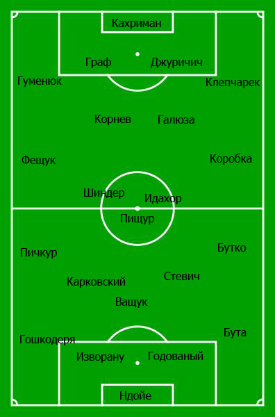 Виталий Кварцяный по сравнению с матчем против Оболони не должен много замен в составе делать. Еще по ходу встречи Зозулю тогда менял Бута, так произойдет сегодня с первых минут. А вторая замена - возвращение Бутко. Кого заменит молодой игрок крайне трудно предположить, наверняка это будут не Пичкур и не Стевич, три оставшиеся кандидата Ващук, Карковский и Герасимюк одинаковые шансы имеют оказаться сегодня на скамейке запасных. Возвращения в оборону Ващука наверняка не следует ожидать, связка Годованый - Изворану пока не подводила.