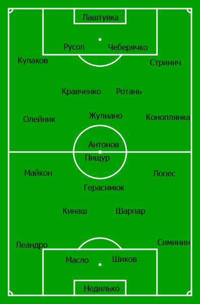 - но Лопес был в офсайде - ничуть не поменялась игра у Днепра, а вот Волынь все настойчивей и настойчивей продолжала угрожать хозяевам. Но был один момент, который мог изменить судьбу матча! Недилько выбежал из ворот и сбил Антонова возле собственной штрафной. Желтую-то кипер Волыни получил, но вопрос - только ли желтая там была? Не фол ли это последней надежды?
