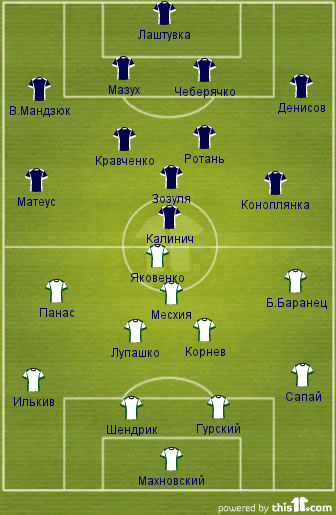 еют прекрасную возможность работать над собой для движения и роста. В прошлом туре Днепр дожал Александрию только в последние минуты, когда соперник бросился отыгрываться. Ввиду событий в том матче испанский наставник наверняка подготовил изменения в составе. Тогда до истечения часа игры он менял защитников Чеберячко и Мандзюка на игроков атаки Олейника и Шахова. Среди потерь сегодня следует отмечать дисквалифицированных Стринича и Олейника, зато вновь могут играть Калинич и Денисов, последний слева заменит Стринича.