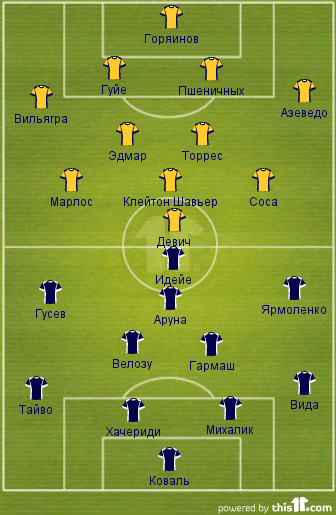 Матч первого круга (20.10.2012): Динамо – Металлист 1:3 (Ярмоленко, 59 – Тайсон, 34; Клейтон Шавьер, 52 — пен.; Торрес, 90+3).