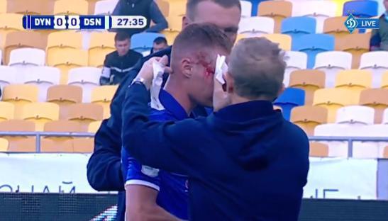 Ой-ой. Страшное рассечение у Виктора. За газоном молодой вингер получает помощь врачей.