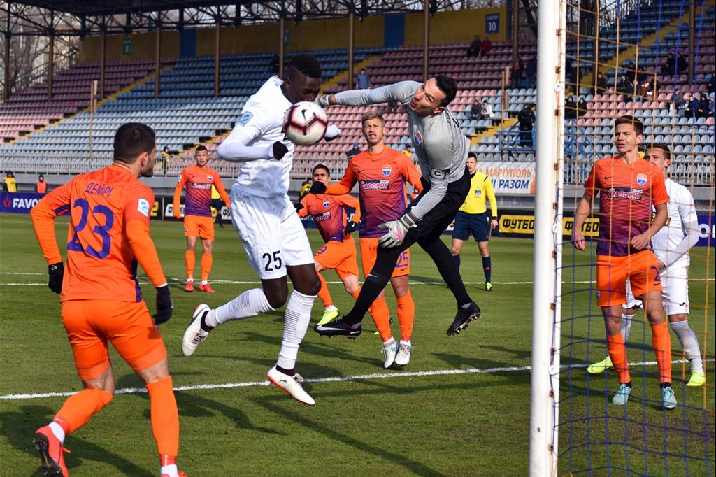 Крынский вовремя вышел из ворот и забрал мяч после передачи противника.