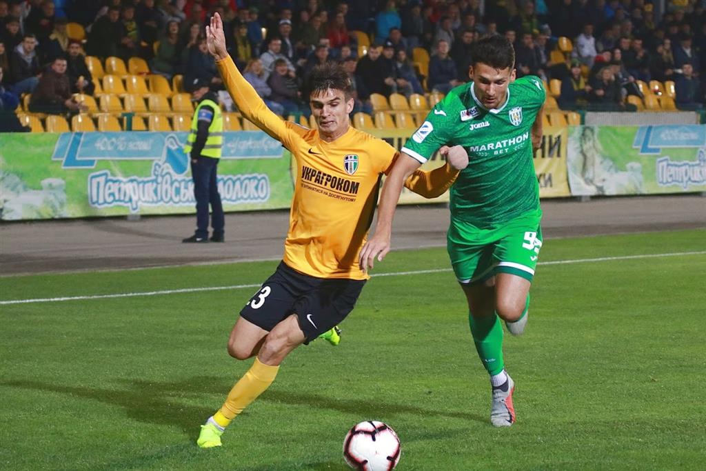 Задерака попытался подключить Мирошниченкно к атаке, но Дубинчак все прочитал и перехватил мяч.